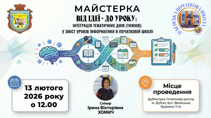 У сучасній українській школі відбувається трансформація підходів: від суворого поділу на предмети освіта рухається до цілісного сприйняття світу дитиною. Саме цю актуальну проблему було розглянуто 13 лютого 2026 року під час майстерки «Від ідеї - до уроку: інтеграція тематичних днів/тижнів у зміст уроків інформатики в початковій школі», проведеної для студентів ІІІ курсу ВСП «Дубенський педагогічний фаховий коледж РДГУ» на базі Дубенської початкової школи. Спікерка заходу, заступниця директора з навчально-виховної роботи та вчителька інформатики початкових класів Ірина Вікторівна Хомич запропонувала майбутнім педагогам поглянути на інформатику не як на ізольований технічний предмет, а як на інструмент дослідження та творчості.